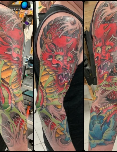 What really gets me excited? Skulls, flowers, and animals—especially pets and Florida wildlife. There’s something special about capturing the personality of someone’s beloved pet or the wild beauty of our local fauna in ink. I love working with bold lines, vibrant colors, and creating pieces that have that perfect balance of playful and striking.