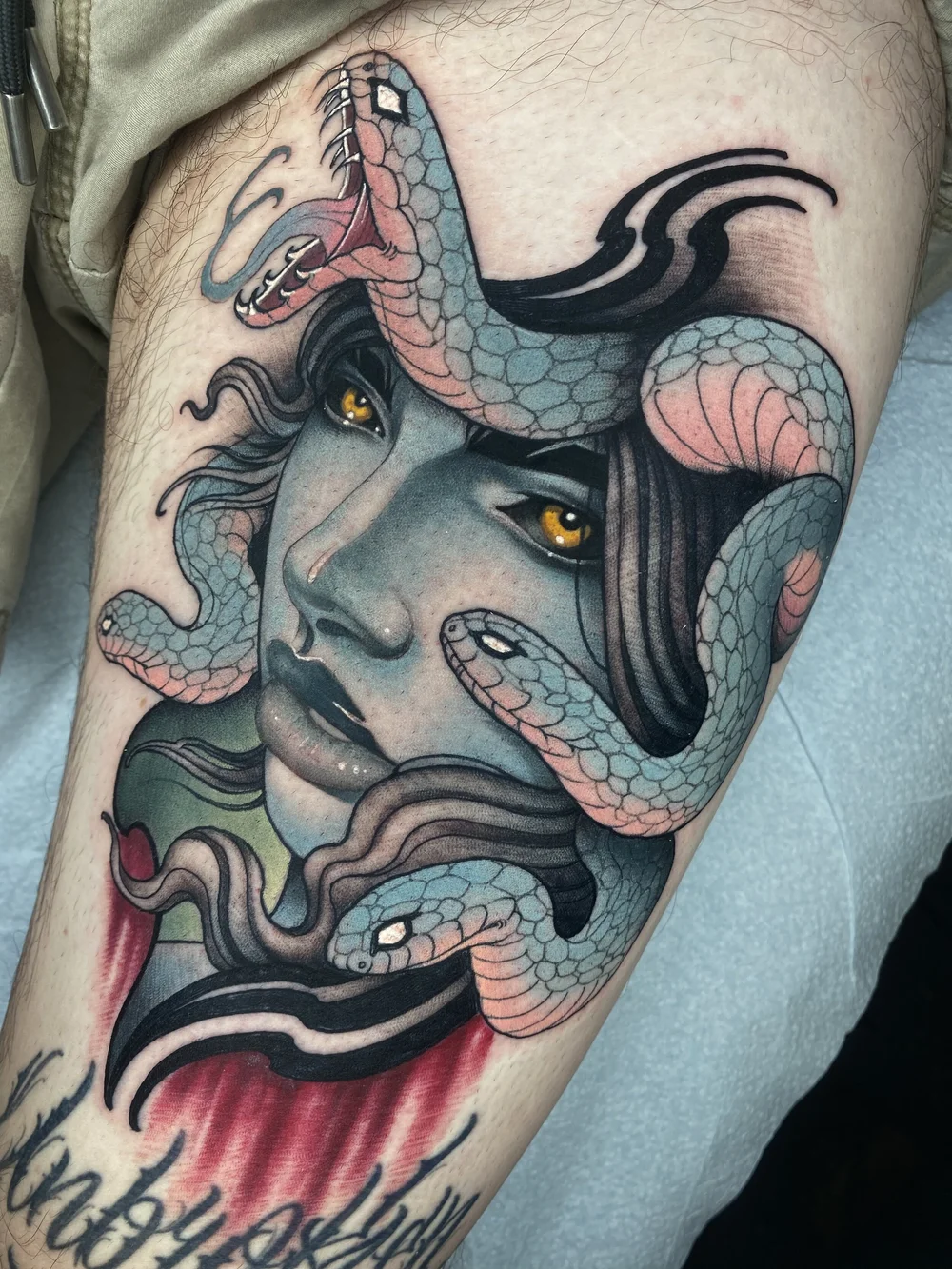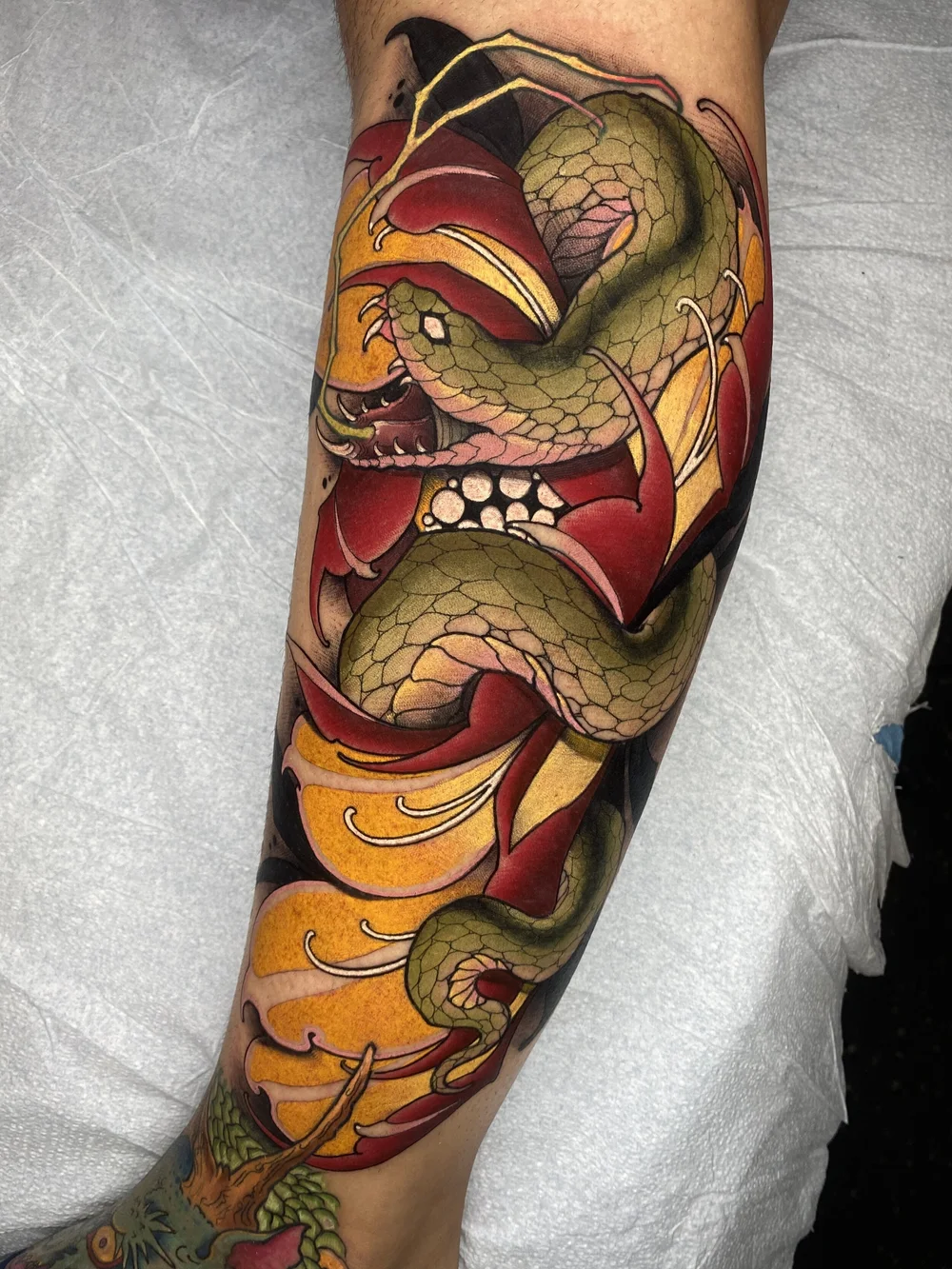 I’m passionate about working closely with my clients to develop designs that not only look incredible but also hold personal meaning. Whether you’re drawn to the flowing compositions of Japanese-inspired work or the bold graphic quality of neo-traditional pieces, I’m here to create something you’ll be proud to wear.